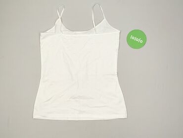Biała damska koszulka na ramiączkach (top) - Klasyczny, prosty krój bez nadruków - Szeroki, zaokrąglony dekolt z przodu - Plecy pełne, ramiączka średniej szerokości - Materiał elastyczny, gładki, ...