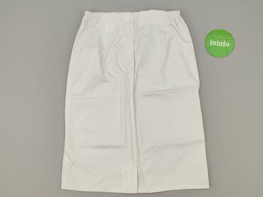 Biała spódnica damska - Fason: lekko rozkloszowana, długość do kolan - Pas: szeroki, modelujący - Zapięcie: kryty zamek z tyłu - Materiał: cienka, lekko kreszowana tkanina (miękka, przewiewna) - W...