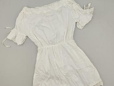 Biała sukienka mini z dekoltem hiszpańskim (off-shoulder) - Krój: rozkloszowany dół, gumka w pasie podkreślająca talię - Rękawy: krótkie, marszczone na gumce - Dekolt: elastyczny, można nosić na r...