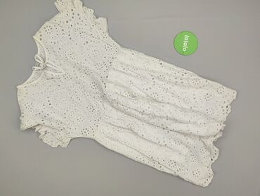 Biała sukienka z ażurowej bawełny (ang. broderie anglaise) - Krój: lekko rozkloszowany, długość mini - Dekolt w kształcie litery V z falbankami z przodu - Krótkie, zakrywające ramiona rękawki - Sz...