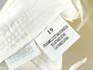 Bermudy damskie F&F w kolorze białym. - Krój: klasyczne bermudy o długości do kolan - Zapięcie: z przodu, dodatkowo szeroki pasek z klamrą w kolorze złota - Kieszenie: dwie wpuszczane z przodu, dw...