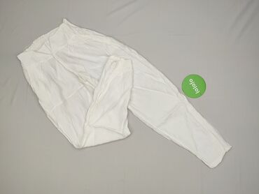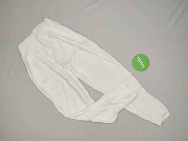 Białe damskie spodnie wykonane w 100% z wiskozy, zaprojektowane z myślą o luźnym kroju i wygodzie. Posiadają elastyczny pas w talii, który zapewnia dopasowanie oraz sznurowane detale u dołu nogawek...Stan: