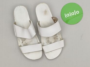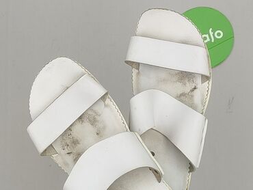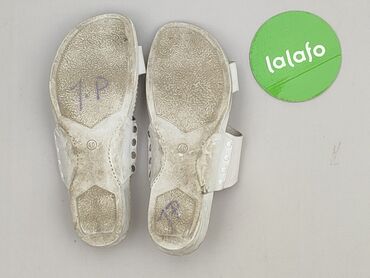 Białe damskie sandały japonki z czarnymi podeszwami. Charakteryzują się otwartym noskiem i paskami z siateczki, które dopasowują się do stopy. Paski tworzą wzór w kształcie litery Y, obejmując pale...Stan: