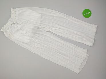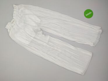 Białe damskie spodnie z lekkiej, przewiewnej tkaniny - Krój: zwężane nogawki, luźna góra - Pas: szeroka, marszczona guma – komfort i dopasowanie bez zapięcia - Kieszenie: dwie boczne - Długość: pe...