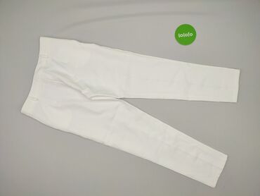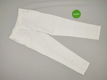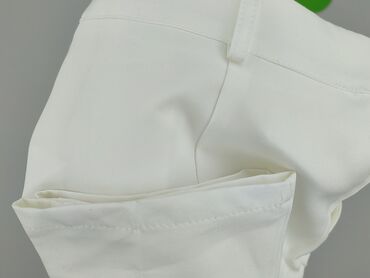 Białe damskie spodnie materiałowe - Krój: proste nogawki, długość 7/8 - Talia: klasyczna, zapinanie na suwak/kryty z przodu - Kieszenie: dwie wpuszczane z przodu (dekoracyjne) - Materiał: 100% pol...