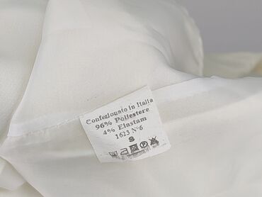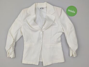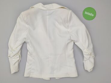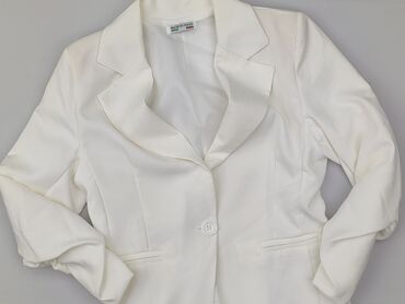 Biały damski żakiet DESIGN - Fason: klasyczny, taliowany, z klapami typu rewers - Zapięcie: dwa guziki z przodu - Rękaw: długi - Kieszenie: dwie wpuszczane z przodu - Materiał: gładki, lekko połys...Stan: