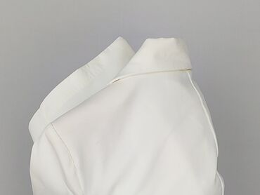 Biały damski żakiet z kołnierzem i klapami - Krój dopasowany, taliowany, długość do bioder - Zapięcie na jeden guzik z przodu - Długie rękawy; przy mankietach po trzy guziki - Dwie przednie, wpusz...
