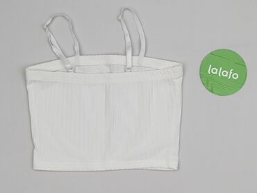 Biała koszulka bez ramiączek (top typu bandeau) - Kolor: biały - Krój: dopasowany, bez ramiączek (bandeau), prosta linia dekoltu - Rozmiar: S (metka „S”) - Materiał: 100% poliester (miękka, lekko ...