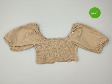 - Fason: crop top z szerokim, elastycznym dekoltem (możliwość noszenia na ramionach lub opuszczony), przód z wiązaniem, bufiaste rękawy z gumką, tył mocno marszczony (smock) dla dopasowania.