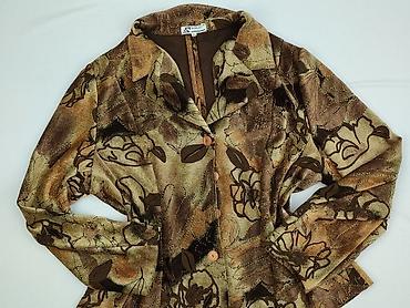 Żakiet damski Taboo, rozmiar 36. - Krój: minimalistyczny, bez kołnierza, z delikatnie taliowanymi przeszyciami; zapinany z przodu na ukryty haftkę/zatrzask. - Kolor i wzór: melanżowy brąz w drobną...