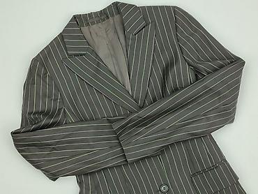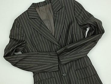 Marynarka damska F&F - Krój: dopasowany, jednorzędowy, zapinany na 1 guzik - Rozmiar z metki: 40 - Kolor: ciemny (grafit/czarny) w delikatny, wielokolorowy prążek - Kołnierz: klasyczne, szerokie k...