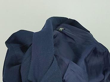 Granatowy damski żakiet/płaszcz przejściowy Made in Italy. - Krój: dłuższy, jednorzędowy, zapinany na 1 guzik - Kołnierz: klasyczne, szerokie klapy - Kieszenie: dwie przednie z patkami (dekoracyjn...