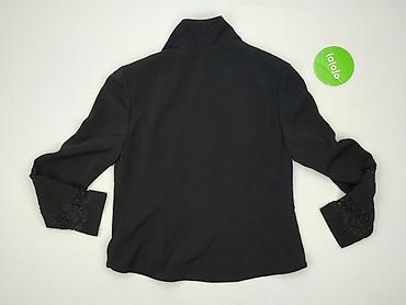 Damska marynarka/żakiet bez zapięcia w kolorze czarnym. - Rozmiar: M (metka) - Krój: taliowany, przód układający się w formie miękkiej klapy/wrap - Rękawy: długie - Materiał: elastyczna, fak...