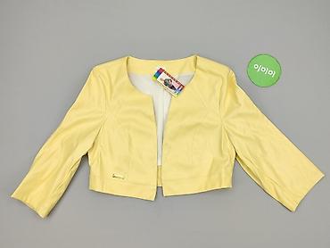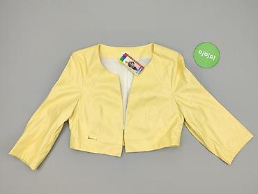 Żakiet/bluza damska w kolorze pastelowej żółci - Fason: krótki, lekko dopasowany, z asymetryczną, zachodzącą na siebie klapą z przodu - Rękaw: długi - Kieszenie: dwie kieszenie z przodu zapinane n...Stan: