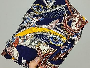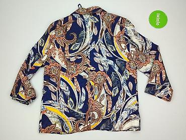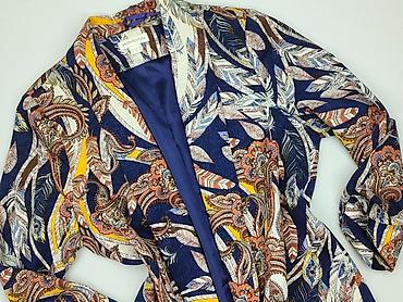 - Wzór: bogaty, kolorowy print paisley i pióra w odcieniach granatu, bieli, rudości i żółci