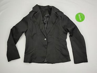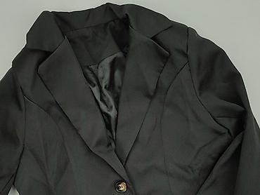 Damska marynarka czarna, klasyczna - Fason: taliowany, jednorzędowy na jeden guzik - Kołnierz: klasyczne, smukłe klapy - Kieszenie: dwie z klapami z przodu - Podszewka: gładka, czarna - Materiał: ...Rozmiar:
