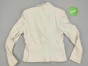 Biała damska marynarka bez zapięcia - Krój: krótka, dopasowana, z modelującymi przeszyciami; lekko zaokrąglone poły, długa rękaw. - Rozmiar z metki: 40 (EU). - Kolor: śmietankowa biel. - Detale: d...