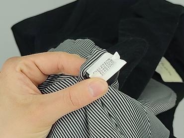 Marynarka damska H&M - Klasyczny czarny żakiet z klapami - Taliowany krój, jednozapięciowy – pojedynczy guzik z przodu - Dwie kieszenie z przodu (paspowane) - Podszewka w szare, pionowe pasy - Roz...