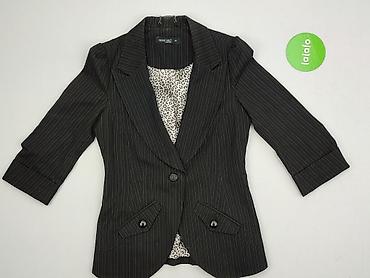 Uniwersalny żakiet do biura i na co dzień – świetnie wygląda z koszulą, topem lub sukienką. Kolor i prążki wysmuklają, a rękaw 3/4 nadaje lekkości. Rozmiar z metki: 36.