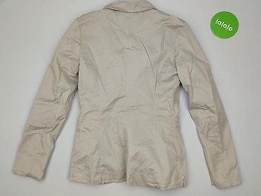 Damska marynarka F by C&A - Krój: krótka, taliowana, jednorzędowa - Kolor: jasny beż - Zapięcie: 4 guziki z przodu; na mankietach po 3 guziki - Kołnierz: z klapami - Kieszenie: 2 naszywane kieszen...