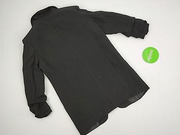 Damska marynarka/żakiet bez zapięcia, czarny. - Fason prosty, lekko taliowany, bez kołnierza (okrągły dekolt) - Długie rękawy - Gładki materiał o lekkiej elastyczności - Podszewka w przedniej częś...