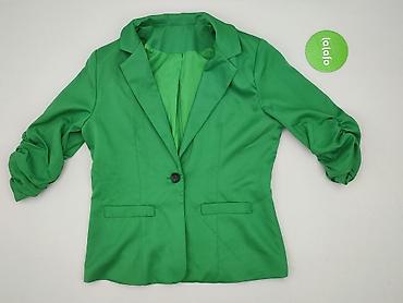 Zielona damska marynarka z guzikami - Fason: dopasowany, lekko wydłużony - Zapięcie: rząd dekoracyjnych, złotych guzików z przodu; dodatkowe złote guziki na mankietach - Kołnierz: klasyczne klapy ...Stan: