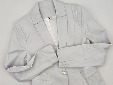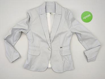 Damska marynarka jednorzędowa, kolor jasnoszary (gołębi). Taliowany krój podkreślający sylwetkę, klasyczne klapy. Zapinanie na jeden ozdobny guzik z przodu.