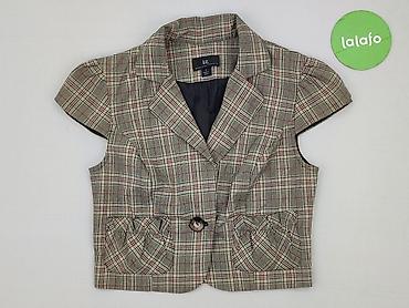 Żakiet damski QUIOSQUE, rozmiar 36. - Krój: taliowany, z klapami, zapinany na jeden guzik. - Materiał (metka): 70% poliester, 20% wiskoza, 10% elastan; podszewka 60% poliester, 40% acetat. - Wzór:...