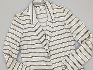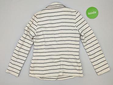 Damska marynarka Bthree, rozmiar 40 - Krój: klasyczny, taliowany, z klapami - Zapięcie: dwa guziki z przodu - Kieszenie: dwie naszywane z patkami z przodu - Wzór: drobne, poziome paski w odcieniac...