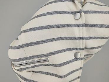 Marynarka damska w paski - Fason: klasyczna marynarka jednorzędowa z kołnierzem z klapami - Zapięcie: 4 ozdobne guziki z przodu - Kolor/wzór: ecru/krem z pionowymi paskami w odcieniach szarości i ...