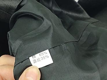 - Materiał (z metki): 65% bawełna, 35% włókna syntetyczne – tkanina lekka, gładka, trzymająca fason