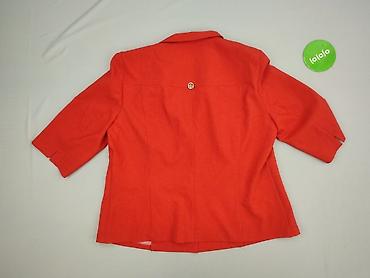 Damska marynarka/żakiet w intensywnym czerwonym kolorze, rozmiar XL. - Fason lekko taliowany, podkreślający sylwetkę - Zapięcie na jeden dekoracyjny guzik z przodu - Rękawy 3/4 - Dekolt w kształcie...