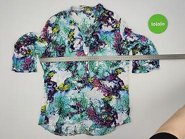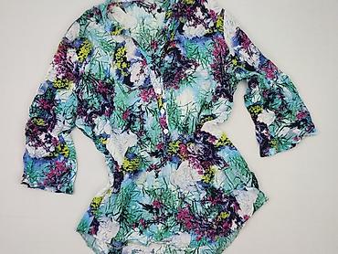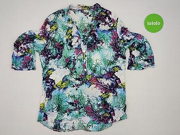 Bluzka damska z krótkim rękawem, wzór kwiatowy - Fason: luźna bluzka z krótkimi rękawami, lekko bufiastymi i zakończonymi mankietem - Dekolt: w kształcie litery V, z krótką listwą guzikową (zapina...