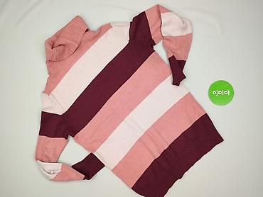 Sweter damski Blue Motion, rozmiar M (40/42). Model z wysokim golfem, w szerokie poziome pasy w odcieniach różu i bordo. Dzianina miękka i elastyczna, przyjemna w dotyku. Ściągacze przy golfie, mankietach i na dole zapewniają dobre dopasowanie. Fason klasyczny, lekko dopasowany, idealny na chłodniejsze dni.