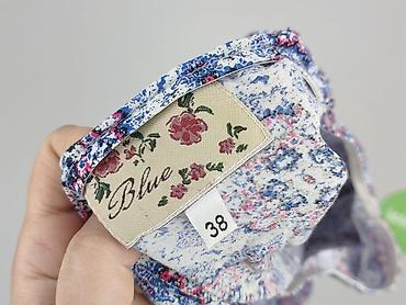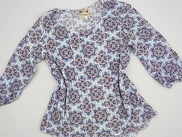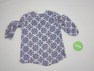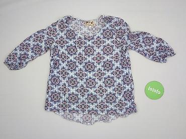 Bluzka damska Blue, rozmiar 38. - Fason: luźny, z delikatnym marszczeniem/przeszyciem przy dolnym brzegu tworzącym lekko „bombkowy” dół. - Rękaw: długi. - Dekolt: łódka. - Wzór: geometryczno-kwiat...Rozmiar: