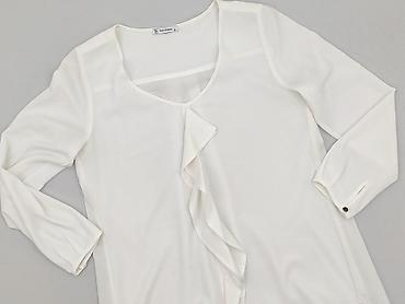 - Fason: lekko luźny, z delikatną falbaną biegnącą asymetrycznie przez przód