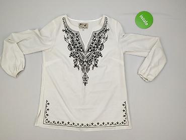 Bluzka damska AMISU, rozmiar S - Kolor: biały - Fason: luźna tunika z długim rękawem - Dekolt: w serek z krótką listwą - Dół lekko zaokrąglony, tył nieco dłuższy - Materiał: lekki, miękki i przewi...