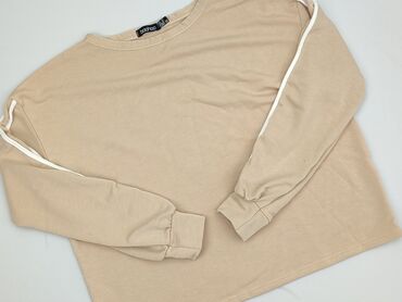 Beżowa bluza damska, rozmiar 42 - Fason: luźny, z długim rękawem - Dekolt: okrągły - Dół i mankiety: elastyczne ściągacze - Materiał: 95% bawełna, 5% elastan – miękka, przyjemna w dotyku, lekko el...
