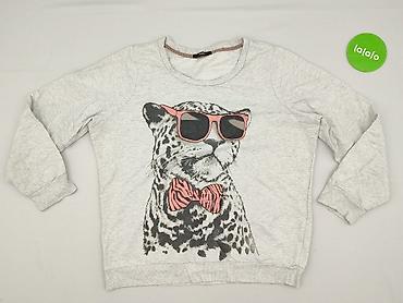 Szara damska bluza z krótkim rękawem, ozdobiona wzorem w panterkę. Charakteryzuje się okrągłym dekoltem i ściągaczami na dole. Idealna do codziennych, swobodnych stylizacji. - Rozmiar: L - Marka: ...