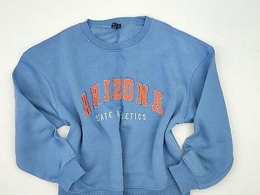 Bluza damska I SAW IT FIRST, rozmiar 12 (UK). Kolor: jasny niebieski. Fason: klasyczny crewneck z prążkowanym ściągaczem przy kołnierzu, mankietach i dole. Nadruk z przodu: ARIZONA – STATE ATHLETICS w pomarańczowo-białej kolorystyce. Materiał miękki, od spodu szczotkowany (futerko) – przyjemny i ciepły. Długość rękawów: długie. Tył gładki, bez nadruków. Idealna na co dzień, do jeansów lub legginsów. Dla kobiety. Używana. Condition: Very Good.