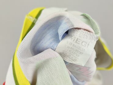 Bluza MEGI Collection, rozmiar L/XL - Krój: klasyczny, z dekoltem w serek (V-neck), długie rękawy. - Wzór/kolor: szerokie, poziome pasy kolorystyczne – biel (góra), limonkowa zieleń (środek) i int...