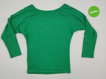 Zielona bluzka damska z długim rękawem - Krój: luźniejszy, delikatnie rozkloszowany od linii biustu, zaokrąglony dół - Dekolt: szeroki, okrągły - Zapięcie: krótka listwa z trzema jasnymi guzikami ...Stan: