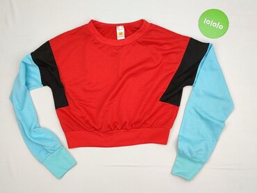 Krótki damski sweatshirt w paski - Krój: crop top, długość do talii - Fason: klasyczna bluza z okrągłym dekoltem i raglanowymi rękawami - Wzór: szerokie poziome pasy w kolorach łososiowo‑czerwonym...