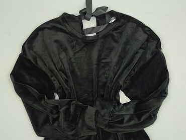 Damska bluza welurowa, czarna - Klasyczny, prosty krój z okrągłym dekoltem - Długie rękawy z mankietami - Miękki, przyjemny w dotyku welur o eleganckim, matowo-połyskującym wykończeniu - Delikatna...