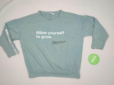 Zielona bluza damska LHD by lesson, rozmiar S/M. Model z miękkiej dzianiny w melanżowej zieleni, z długim rękawem i ściągaczami przy dekolcie, mankietach i dole. Z przodu duży, ażurowy aplikowany m...