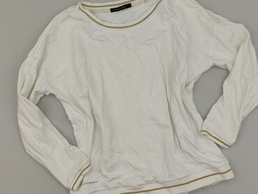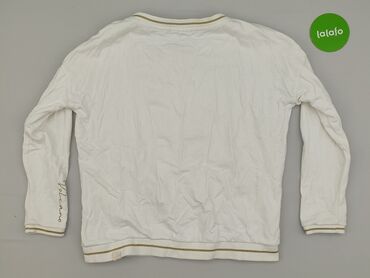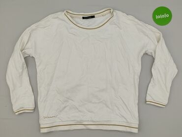 Bluzka damska z długim rękawem - Kolor: biały - Dekolt: okrągły, wykończony srebrną plecioną lamówką - Nadruk: przetarcia/srebrne aplikacje z przodu - Rękaw: długi (około 3/4 – lekko krótszy) - Kr...