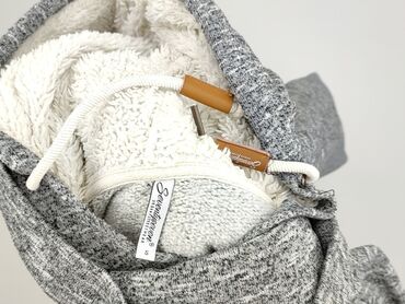 Szary krótki bolerko-bluza z kapturem - Fason: crop bolero – krótka nakładka na ramiona z długimi rękawami i kapturem - Kolor: jasny melanż szary - Materiał: 100% poliester (metka na zdjęciu) - Wy...