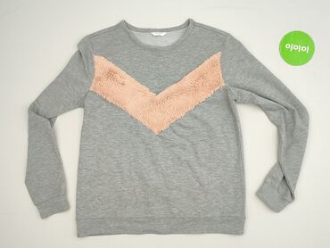 Bluza damska z długim rękawem, rozmiar M. - Kolor: jasnoszary melanż - Na przodzie dekoracyjna naszywka z miękkiego, pluszowego materiału w kształcie litery V w kolorze pudrowego różu - Okrągły dek...Stan:
