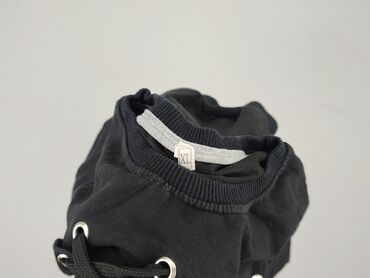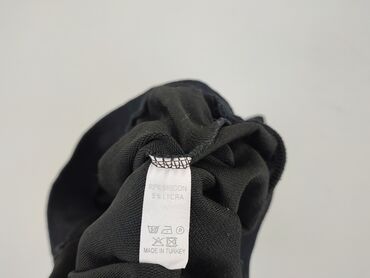 Bluza damska, czarna, z dużym białym nadrukiem w stylu liścia koniczyny na froncie. Ozdobne sznurowania na górnej części przodu z metalowymi oczkami. Krój z długim rękawem, ściągacze przy mankietach i u dołu. Rozmiar: XL (na metce). Materiał: 95% wiskoza, 5% lycra – elastyczna, miękka dzianina. Metki z instrukcją prania: pranie w 30°C, prasowanie dozwolone, czyszczenie chemiczne P, nie wybielać, nie suszyć w suszarce. Wyprodukowano w Turcji. Dla dorosłej kobiety (nie niemowlę). Kolor: czarny z białym nadrukiem. Styl casual/sportowy. Suitable do codziennych stylizacji.