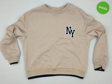 Beżowa bluza Sinsay, rozmiar M. - Klasyczny krój z okrągłym dekoltem - Nadruk z przodu: “BROOKLYN STOLE MY HEART” w białym kolorze - Długie rękawy - Ściągacze przy mankietach i u dołu - Miękka, pr...Stan: